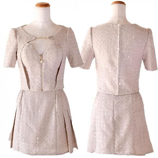 1528ツイードセットアップ ミニドレス キャバドレス パーティードレス