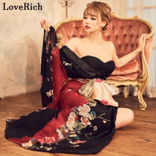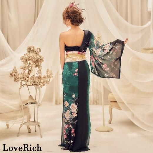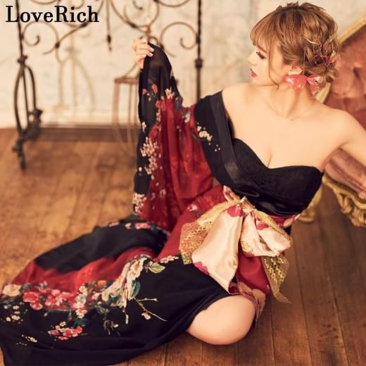 1249花柄 レース ロング ミニスカート オフショル 帯 花魁 着物 ドレス コスプレ イベント ハロウィン