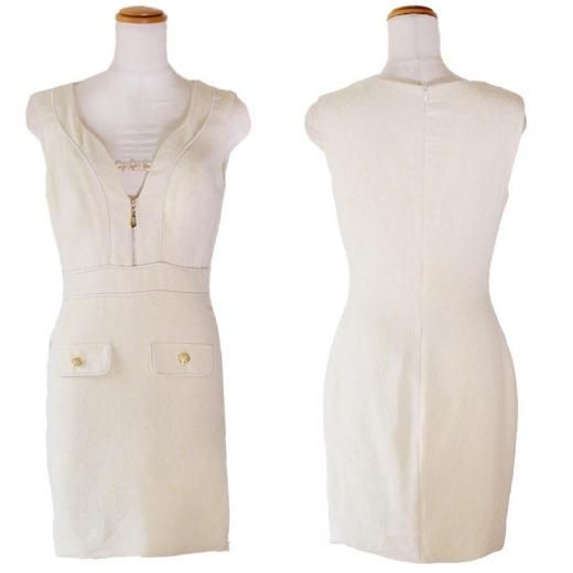 1309パールライン ツイード パールファスナー スリット ボタン タイト ミニドレス キャバドレス