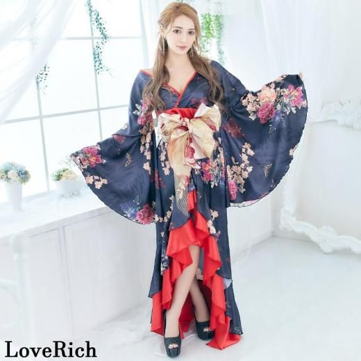 1249花柄 レース ロング ミニスカート オフショル 帯 花魁 着物 ドレス コスプレ イベント ハロウィン