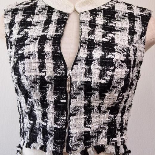1333 ツイード セットアップ ノースリーブ チェック柄 背中隠し タイト スリット ミニドレス キャバドレス