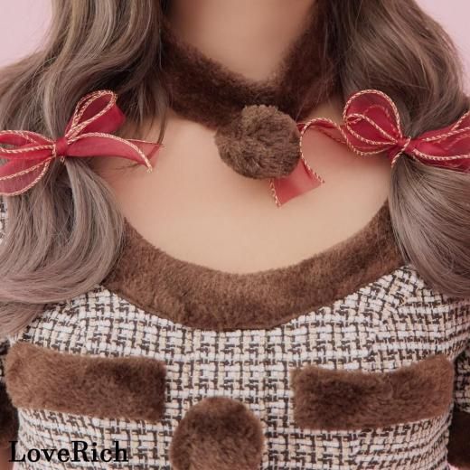 1384ツイード生地 リボン フレア ミニドレス キャバドレス