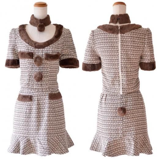 1528ツイードセットアップ ミニドレス キャバドレス パーティードレス