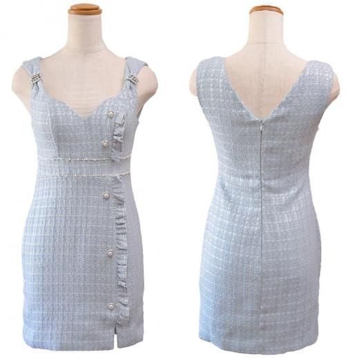 1331フリルパール ツイード生地 ワンピース ミニドレス キャバドレス