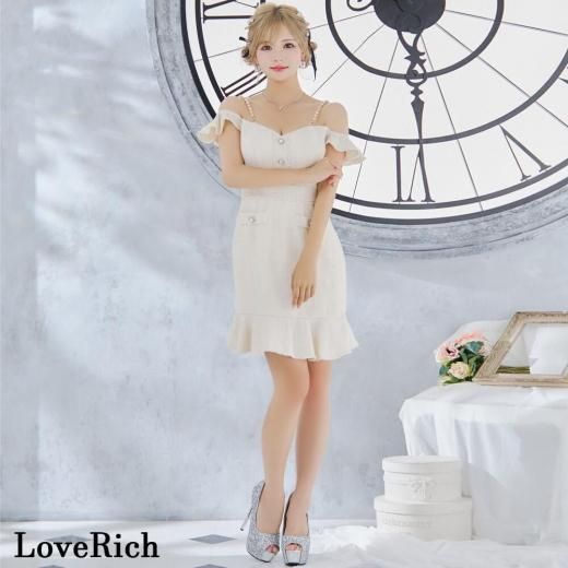1339パールライン ツイード パールショルダー オフショル マーメイド タイト ミニドレス キャバドレス