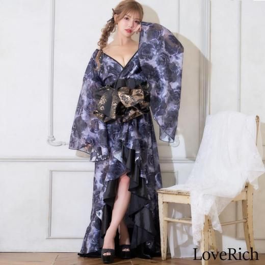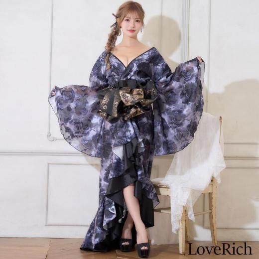 0935アシンメトリー 花柄 レース 豪華 花魁 着物 ドレス コスプレ イベント ハロウィン