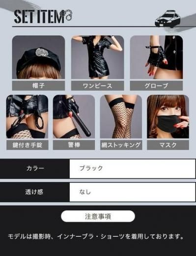 1:帽子 2:ワンピース 3:グローブ 4:鍵付き手錠 5:警棒 6:網ストッキング