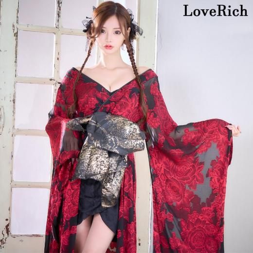 1249花柄 レース ロング ミニスカート オフショル 帯 花魁 着物 ドレス コスプレ イベント ハロウィン