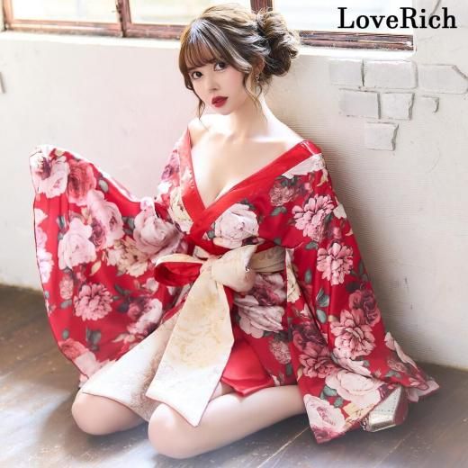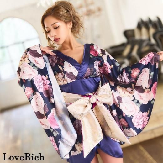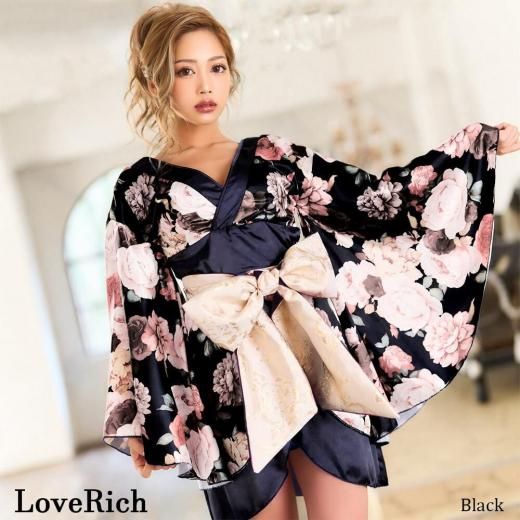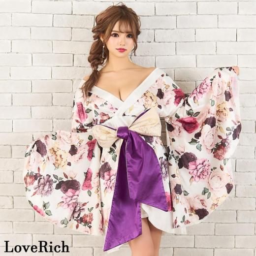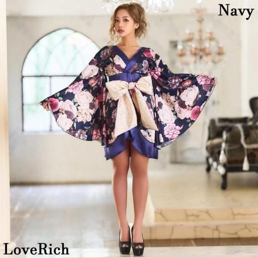 1318和柄 花柄 オフショル ミニ 豪華 帯 リボン 花魁 着物 ドレス コスプレ イベント ハロウィン
