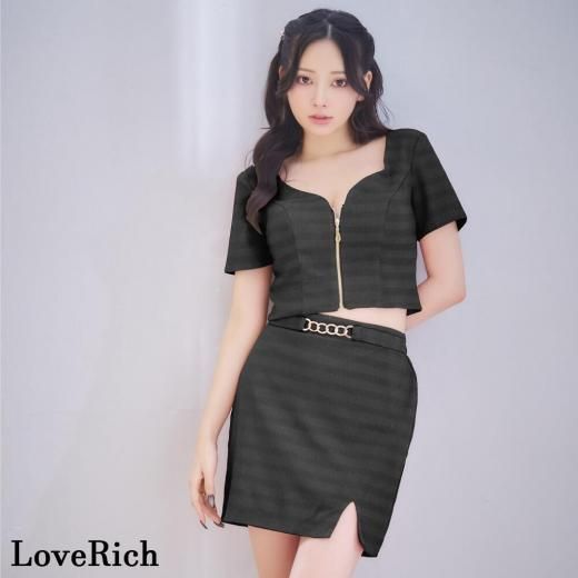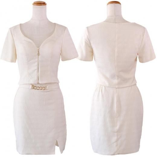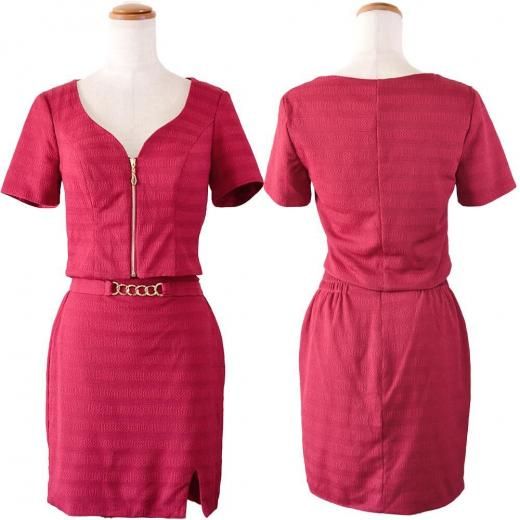 1358半袖 セットアップ ファスナー チェーン タイト スリット セクシー ミニドレス キャバドレス